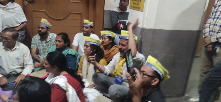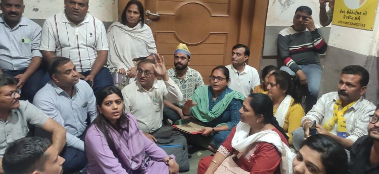 (શાળા ખસેડવા મુદ્દે આમ આદમી પાર્ટીના નેતાઓના પાલિકામાં ધરણા)